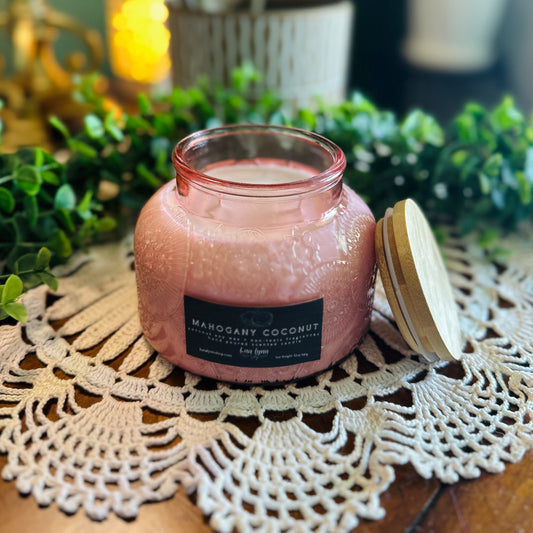 Mahogany Coconut | Scented Candle in Decorative Pink Glass Jar