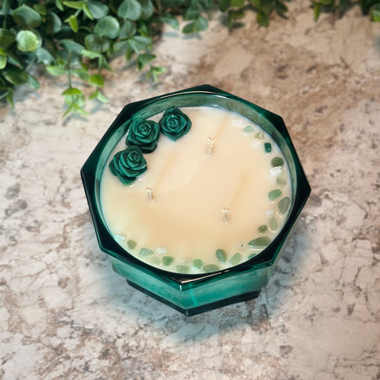 Antique Glass Candle | Oakmoss + Amber Scented | Clear Quartz Crystal | 12oz Jar